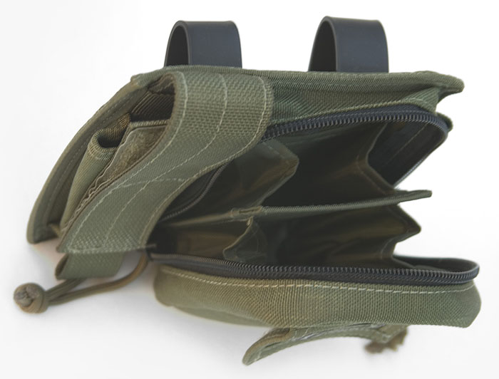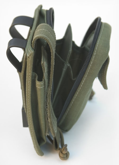 Notes: Fairly small pouch, but good divisions. OD has more of a smoke green color than most gear. Depending on where you buy, Malice Clips are not always included. Solid lil' pouch for your belt or even as an small admin pouch.
