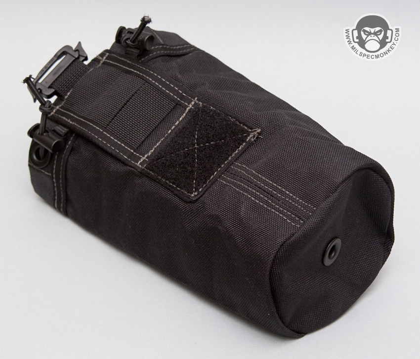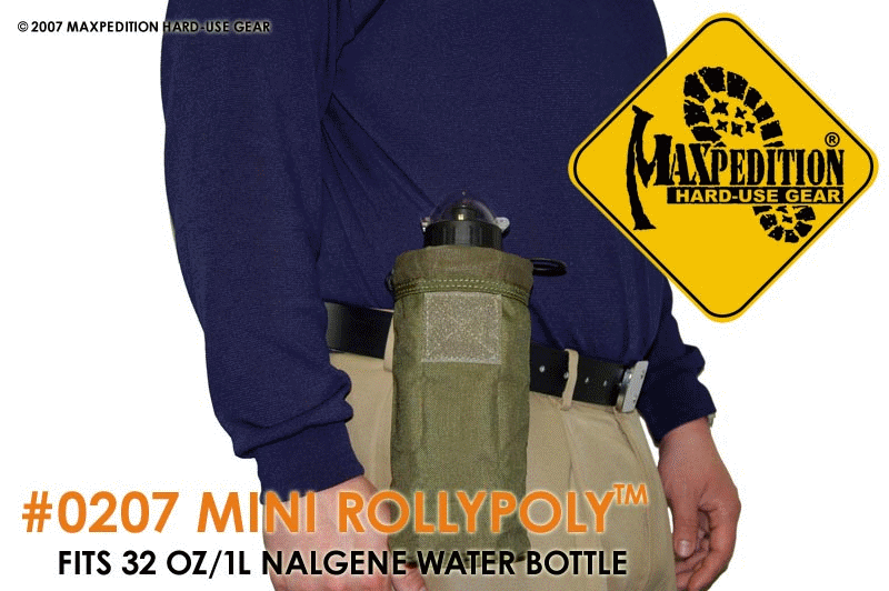 The mini has all the great features of the standard rolly poly, however is a smaller cut to fit Nalgene containers and water bottles. When filling the pouch to its max, closure is by using the cord locks to close the opening around the top of the container rather than using the main flap. When not used for liquid containers, the pouch is great for anything else you can fit in there such as shell casings. A black mesh version exists which is lighter and allows contents of the pouch to be seen. Currently available in OD, Khaki, Black, ACU. Malice clips not included. Check out the animated gif link for a quick foldup demo.