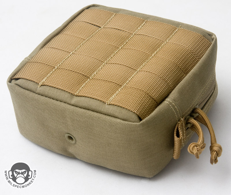 I'm not sure of the design intent, but there is loop velcro in the interior bottom of each pouch. The front has 3 channels of PALS (5" tall) With a good dose of loop velcro for your favorite patch. The logo is even off the velcro area as to not steal your space which has been a problem on some other designs. The backs have a full set of PALS for the most mounting options. 5" Tac Ties or similar are recommended for mounting. For when things get wet and wild a grommet is on the bottom for drainage. Check these out for padded pouches with more features than most.