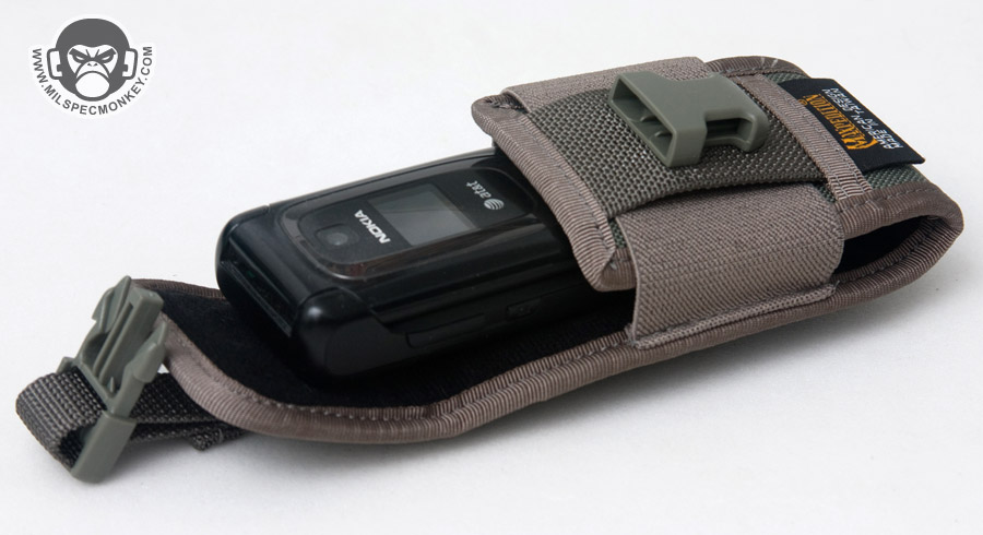 So you might be thinking, "How the hell is this any different than the Phone Clip-On Series", and I'd have to say not much except the sizing and full coverage flap. The sizing is made to fit the popular iphone while being able to hold many others of similar size due to the elastic webbing and adjustable SRB. The flap comes over the top to give enhanced protection in which the inside still has a nice soft material.