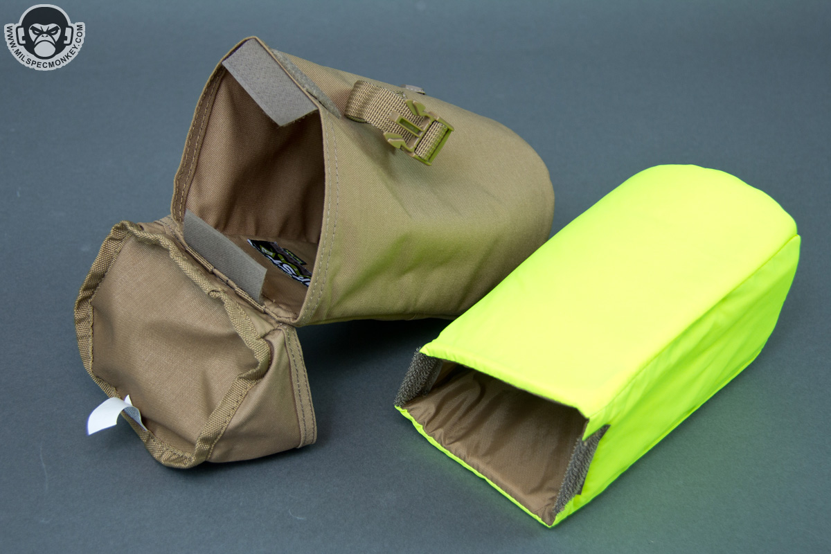 Where appropriate most of the pouches have reversible HD foam sleeves included by default which lets one have padding if desired, or can easily take the foam sleeve out (attached with simple hook and loop) to give back a little more holding capacity. The reversible factor is a nice touch as well letting the user pick if they want a more contrasting interior or just an exterior matching color. Like on their bags, First Tactical has their own textured zipper pulls and use 1" loop strips to give patch mounting capability. On these pouches I wish they just used wider loop instead of 1" strips. The 1" makes sense on the packs since they need to leave room for the attachment slots, however this does not apply to the pouches. Perhaps they just got a good bulk price on the 1" and not a deal breaker issue either way.
