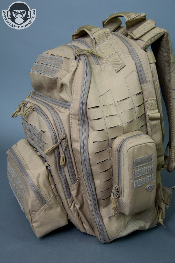 For common features the main construction material is a 500D nylon, although not Cordura specifically it acts comparable and does not come off feeling cheap. First Tactical has also come up with their own PALS/MOLLE attachment system which can be pretty hard to make a new one these days. Using webbing and custom plastic hook ends they work pretty good giving a positive snag point at all times by design. With the hardware being overall low profile they are generally easy to weave through webbing / slots, however doing the final connection hook at the end can take a bit more effort. Since the hooks don't protrude out from the bottom connection they stay out of the way, but then there isn't much to grab onto while doing the last weave. Fortunately if this is a super con for anyone, adding slim pull-cords to the holes in the hooks would be an quick way to make mounting First Tactical pouches easier.