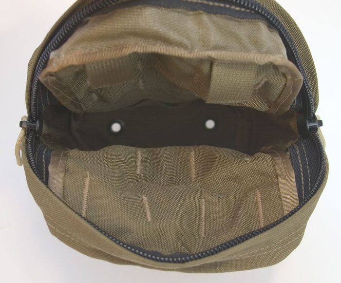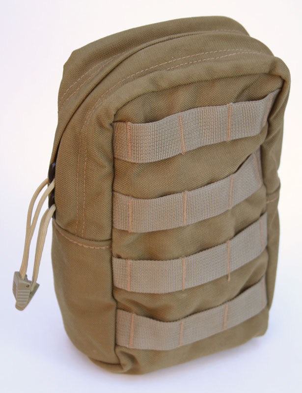 Notes: Solid no-nonsense pouch. For a side torso pouch the pullstrings are a little too loose causing the pull force to wrap around. Basic MOLLE snaps for PALS connection.