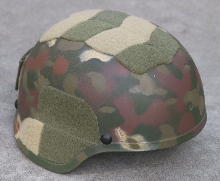 My MICH: did a wing-it camo job and velcro addon. Have semi recently added more medium browns (not shown). Replaced black strap with foliage one from supplycaptain.